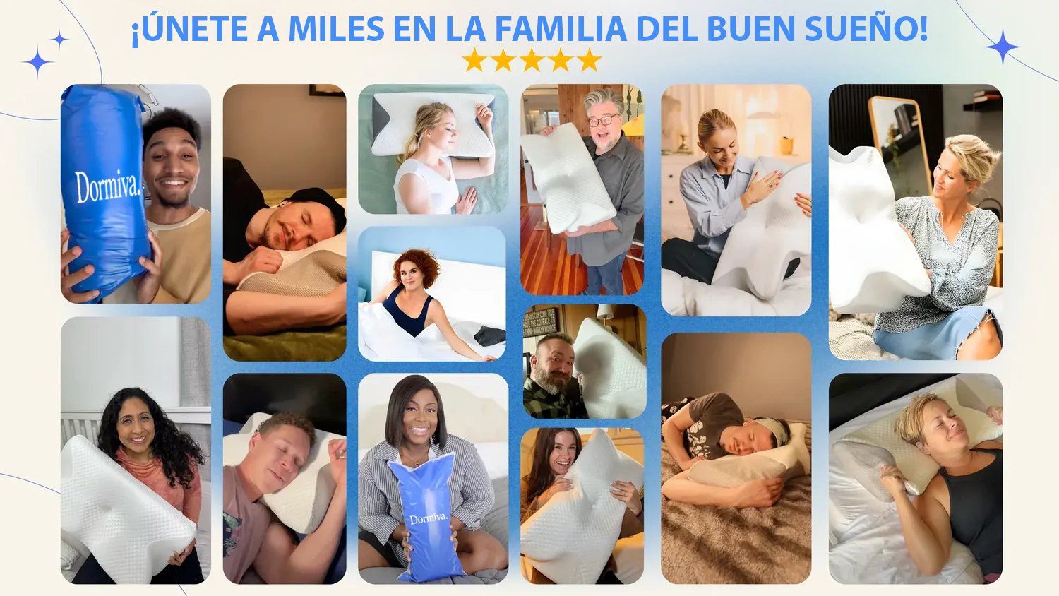 Transforme su experiencia de sueño con la almohada Dormiva Aura™ y únase a nuestros clientes satisfechos para lograr un mejor sueño y un mayor bienestar.